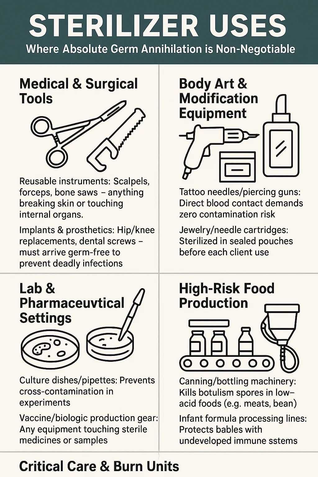 Sterilizer Kegunaan: Di mana penghapusan kuman mutlak tidak boleh dirunding